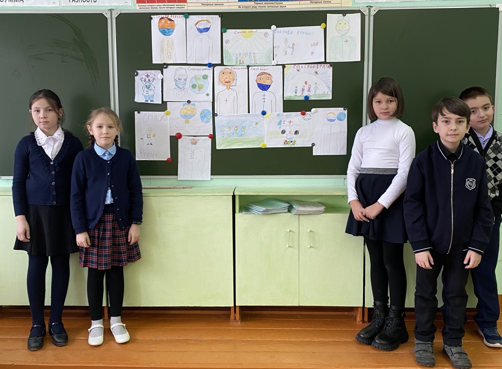 К акции "Спасибо врачам" присоединились и ребята нашего класса. Дети нарисовали рисунки, в которых выразили свою благодарность всем врачам, стоящим на передовой в это нелегкое время. На плечах медицинских работников - здоровье всех людей: взрослых и детей. От ответственности каждого из нас зависит, как скоро продлится эпидемия и когда она пойдет на спад. А ограничить передвижение, общение, соблюдать меры гигиены -это лучшая помощь врачам.